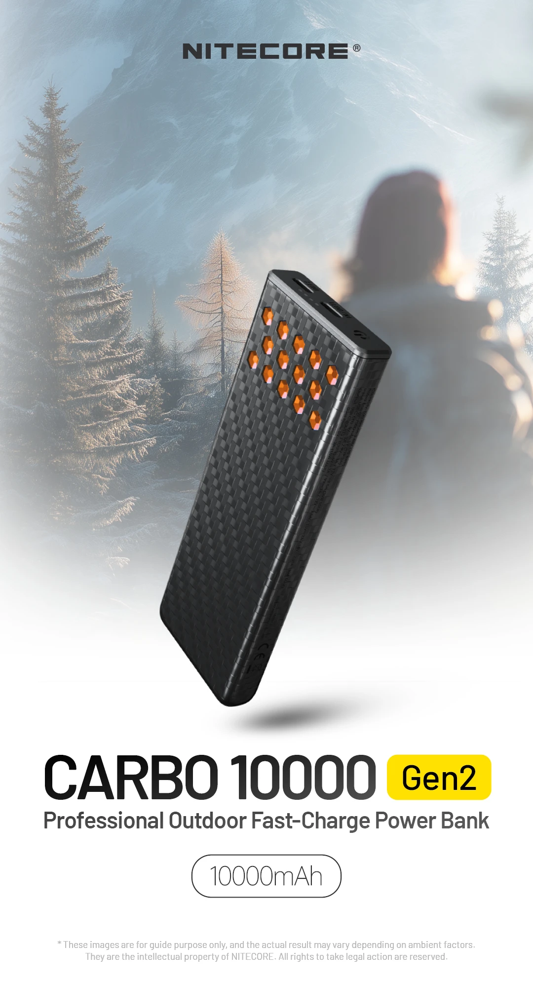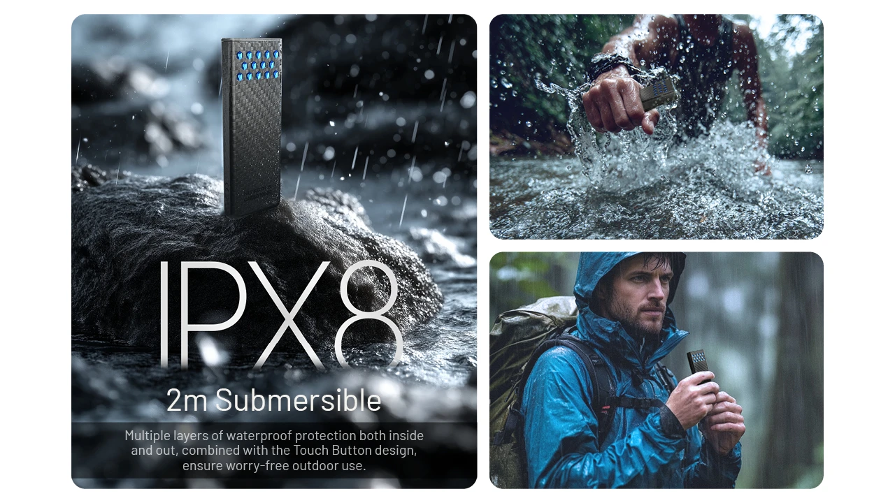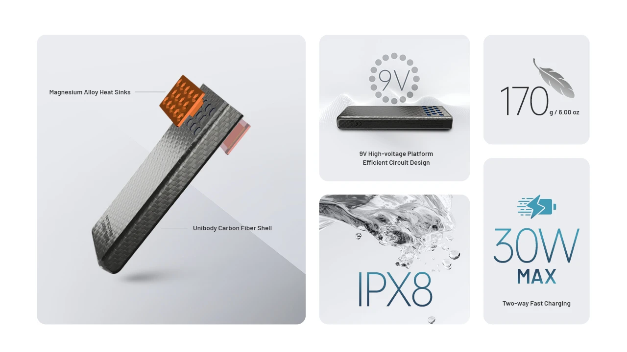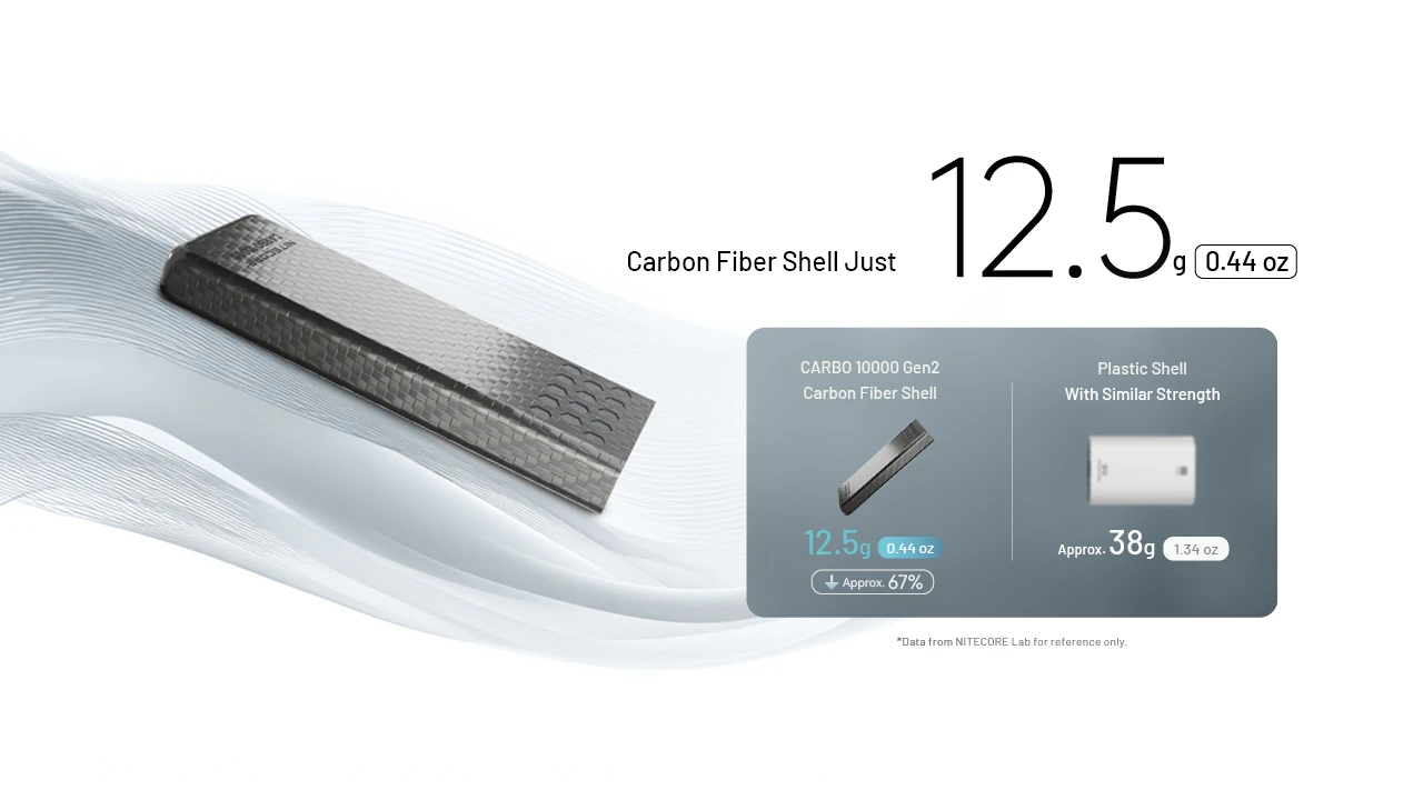 The NITECORE CARBO 10000 Gen2 Professional Outdoor Fast-Charge Power Bank supports up to 30W two-way fast charging. With an IPX8 waterproof rating, it features a carbon fiber shell, magnesium alloy heat sinks, and a high-energy-density cell, delivering reliable power for every outdoor adventure.