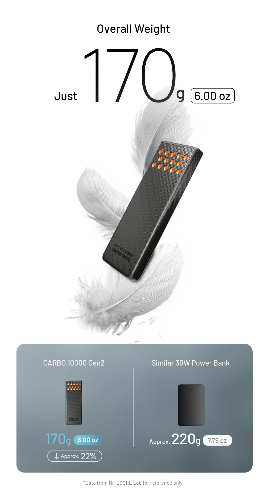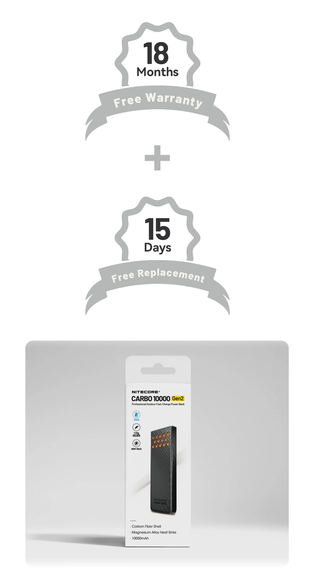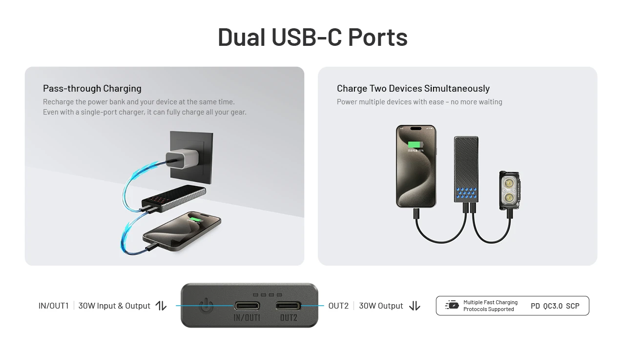 The NITECORE CARBO 10000 Gen2 Professional Outdoor Fast-Charge Power Bank supports up to 30W two-way fast charging. With an IPX8 waterproof rating, it features a carbon fiber shell, magnesium alloy heat sinks, and a high-energy-density cell, delivering reliable power for every outdoor adventure.